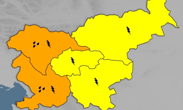 V zahodni Sloveniji ob nevihtah možni močnejši nalivi
